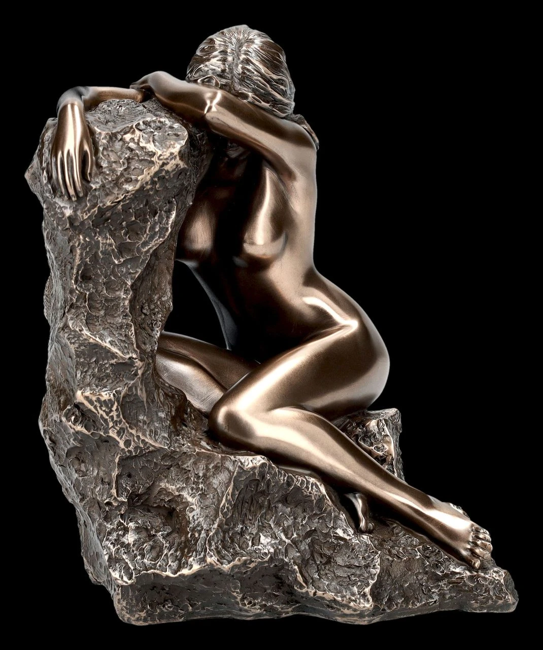 Erschöpft lehnt sich die junge nackte Frau an den Felsen, zu dem sie sich offenbar gerade noch retten konnte. Ihr Kopf ruht auf ihren Armen und Ihre langen Haare fallen scheinbar nass über ihre Schultern. Obwohl sie beinahe mit dem Felsen zu verschmelzen scheint, ist die Eleganz der nackten Schönheit nicht zu übersehen. Die wunderschöne weibliche Akt-Figur aus der Studio Collection von Veronese aus hochwertigem Kunststein (Polyresin) wurde aufwändig und edel bronziert. Die raffiniert inszenierte Silhuette dieser 15,5 cm hohen, 13 cm breiten und 10 cm tiefen Akt-Figur wirkt nicht nur erotisch, sondern auch sehr stilvoll. Sie ist ein wirklich edler Blickfang in jedem Ambiente und so auch ein wunderbares Geschenk für jeden, der die Schönheit dieser Figur zu schätzen weiß.