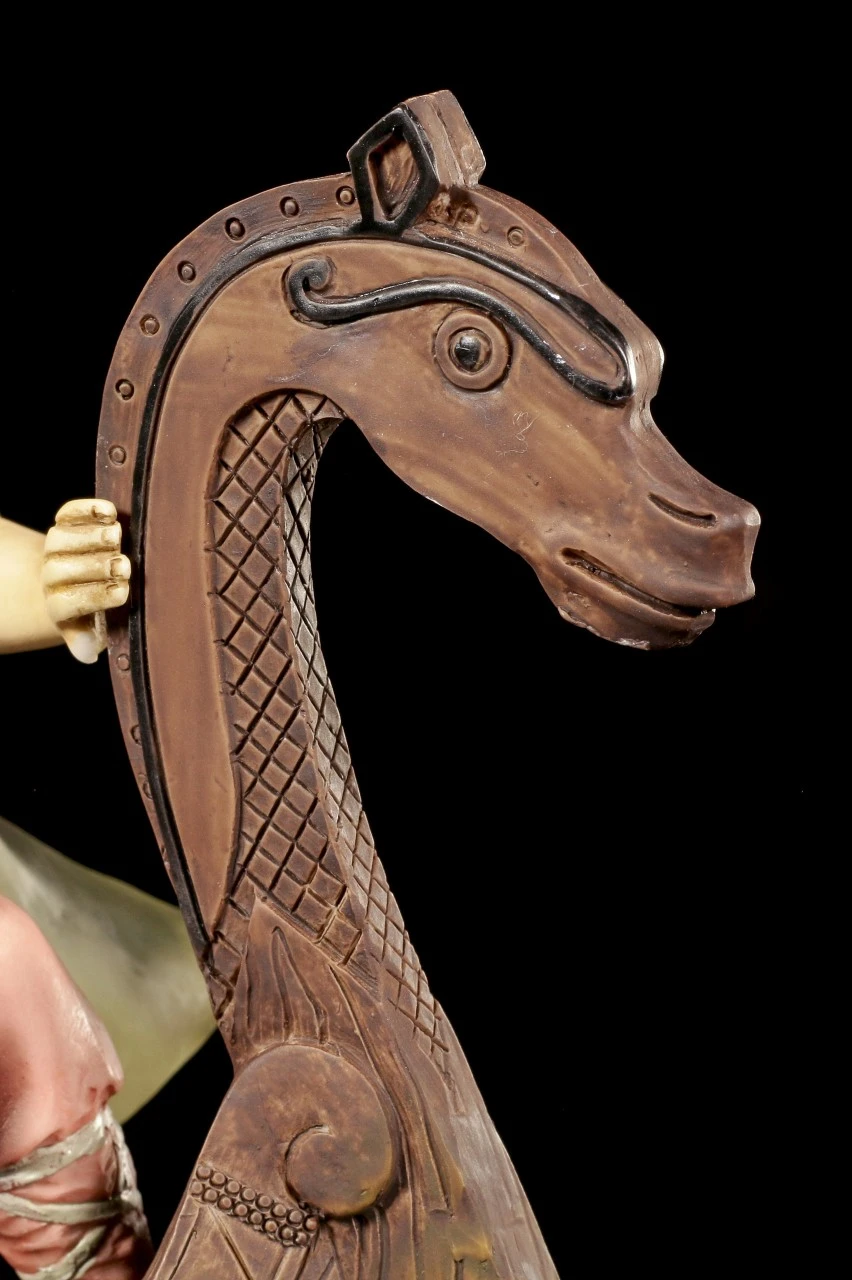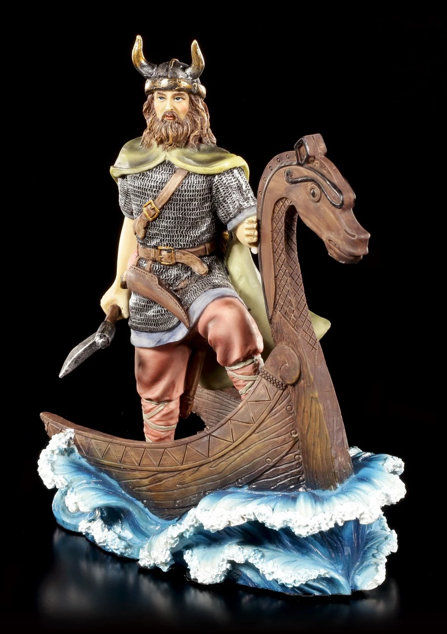 Handbemalte Wikinger Krieger Figur auf Schiff