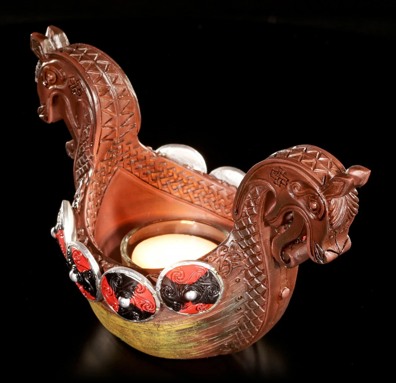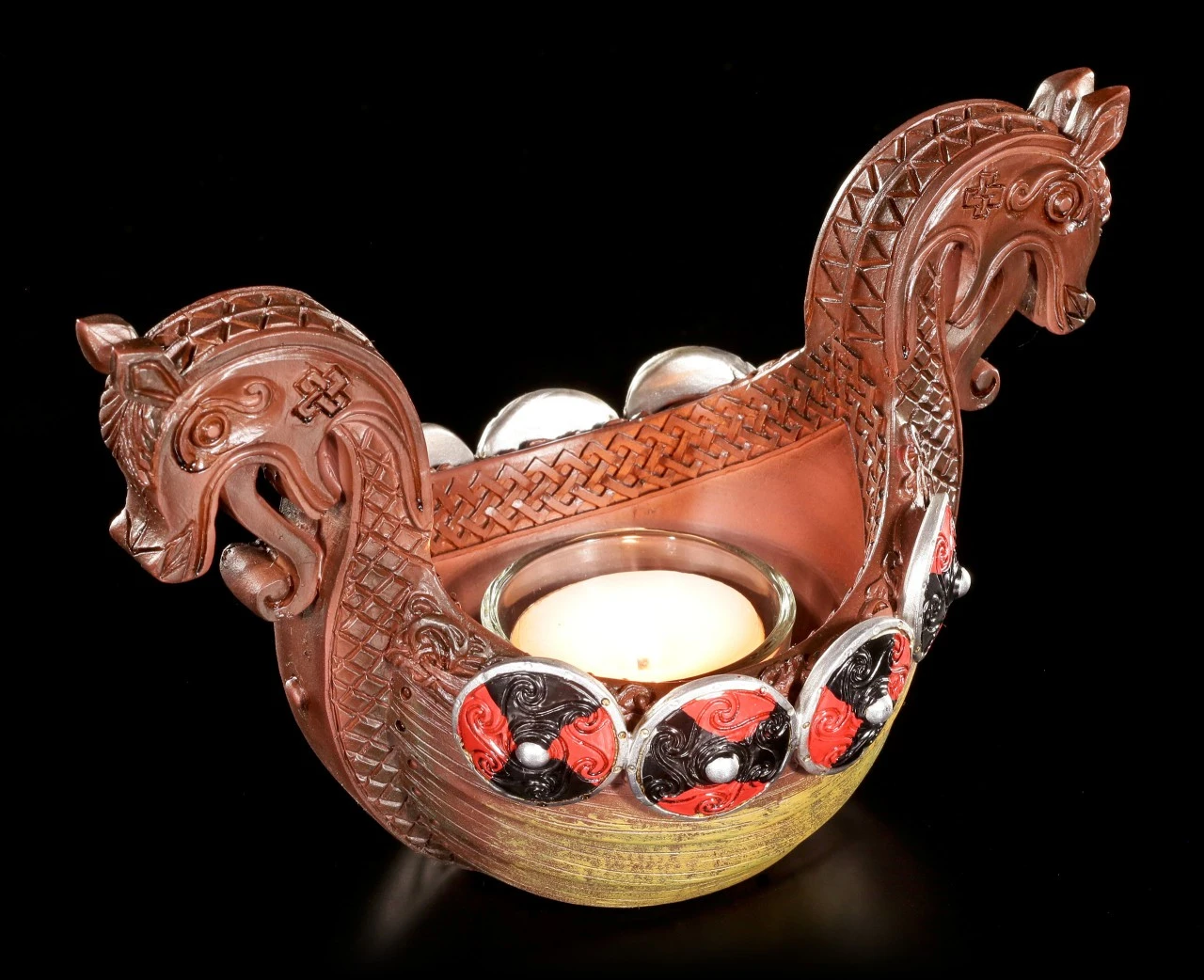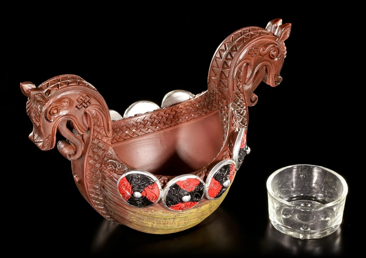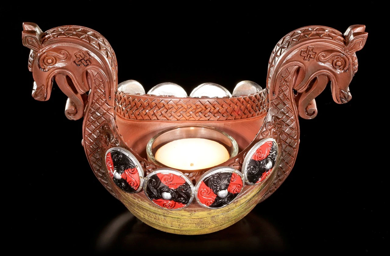 Zur Zeit der Wikinger wurden verstorbene Odinsverehrer Feuer bestattet. Dieser schöne Teelichthalter im Look eines Langbootes soll an diese Tradition erinnern.