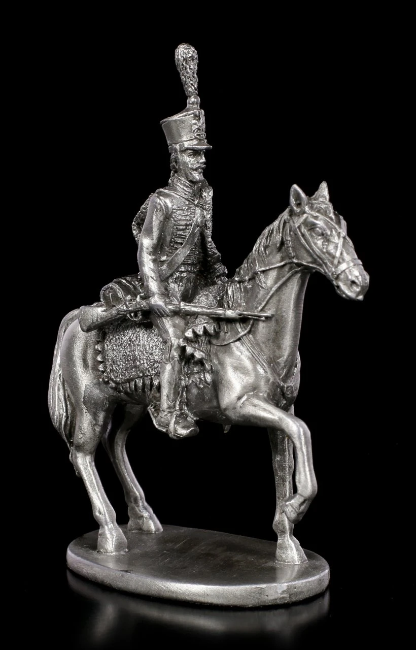 Der reitende Soldat aus der Serie Myth & Legends – Historical Knights von Veronese ist detailreich verziert und zeigt einen stolzen Soldaten mit seiner Muskete hoch oben auf seinem Pferd. Die zinnfarbene Soldaten Figur wird in einer passenden Geschenkbox geliefert und ergänzt Ihre Zinn Figuren Sammlung um ein wunderbares Stück.
